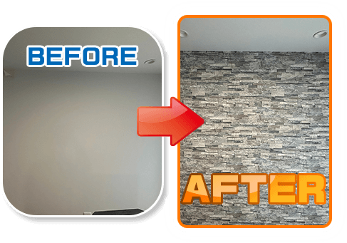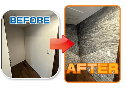 部屋の壁の一面だけ質感や色の異なる壁紙を張り、印象的な空間を作ります。寝室やリビング、飲食店、オフィスにもおすすめの施工です!