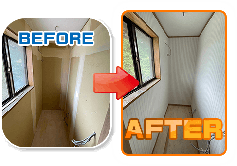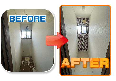 書斎の本棚に接していた部分がカビてしまい、かなり見栄えが悪くなってしまったため、壁紙の張替えをお願いしました。壁紙を剥がし、しっかりとカビ取りや消毒をしてから張り替えてくれたのでとても安心しました!