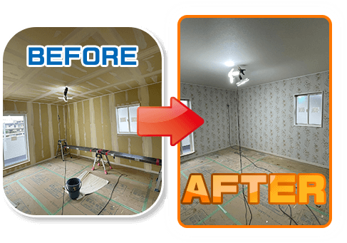経験豊富な壁紙張替えのプロが施工に伺います。必要な工程を見極め、効率よくきれいに張り替えを行うため、高品質で早い施工が可能です。